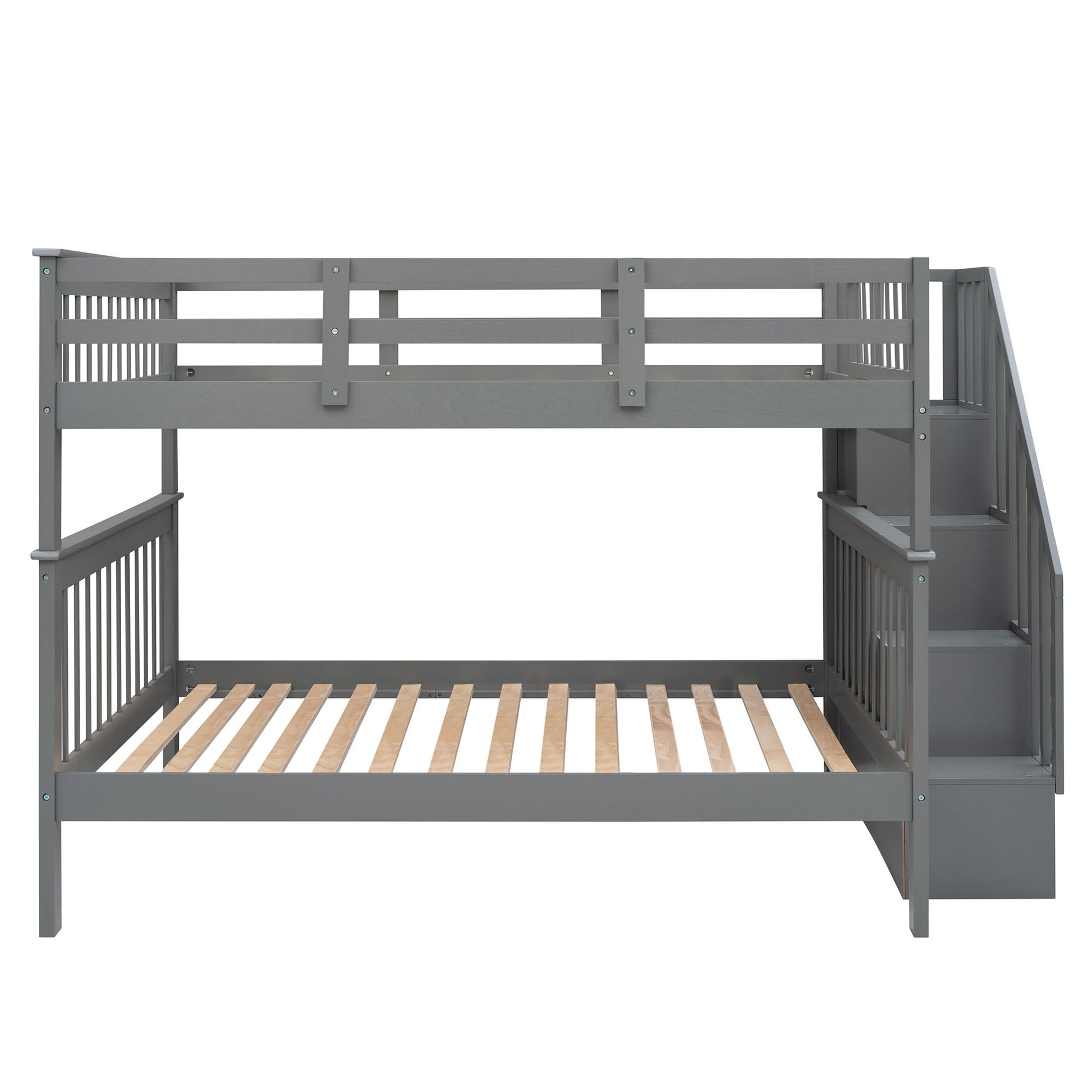 Full Over Full Stairway Bunk Bed With Storage And Guard Rail For Bedroom - Gray