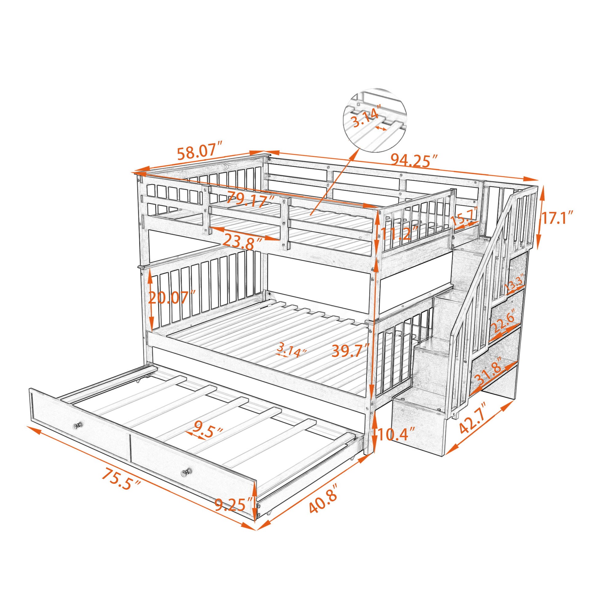 Stairway Bunk Bed With Storage And Guard Rail For Bedroom