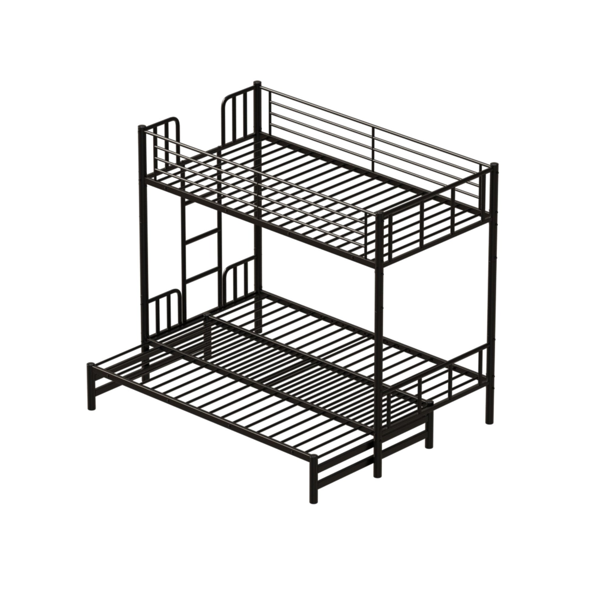 Twin Metal Pull Out Bunk Bed With Guardrail And Built In Ladder, Space Saving Convertible Frame For Bedroom - Black