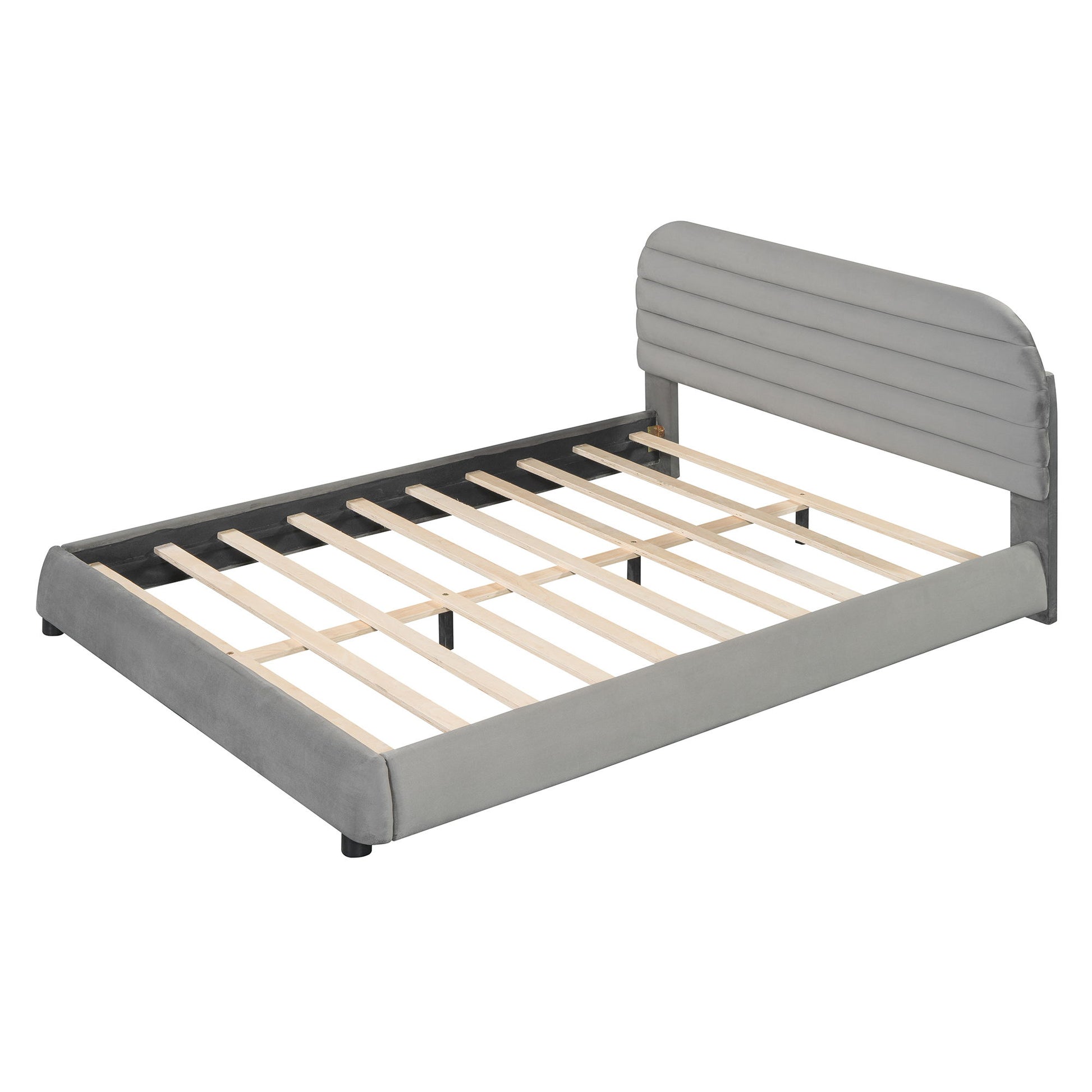 Queen Size Upholstered Platform Bed Frame And Stylish Curve Shaped Design - Gray