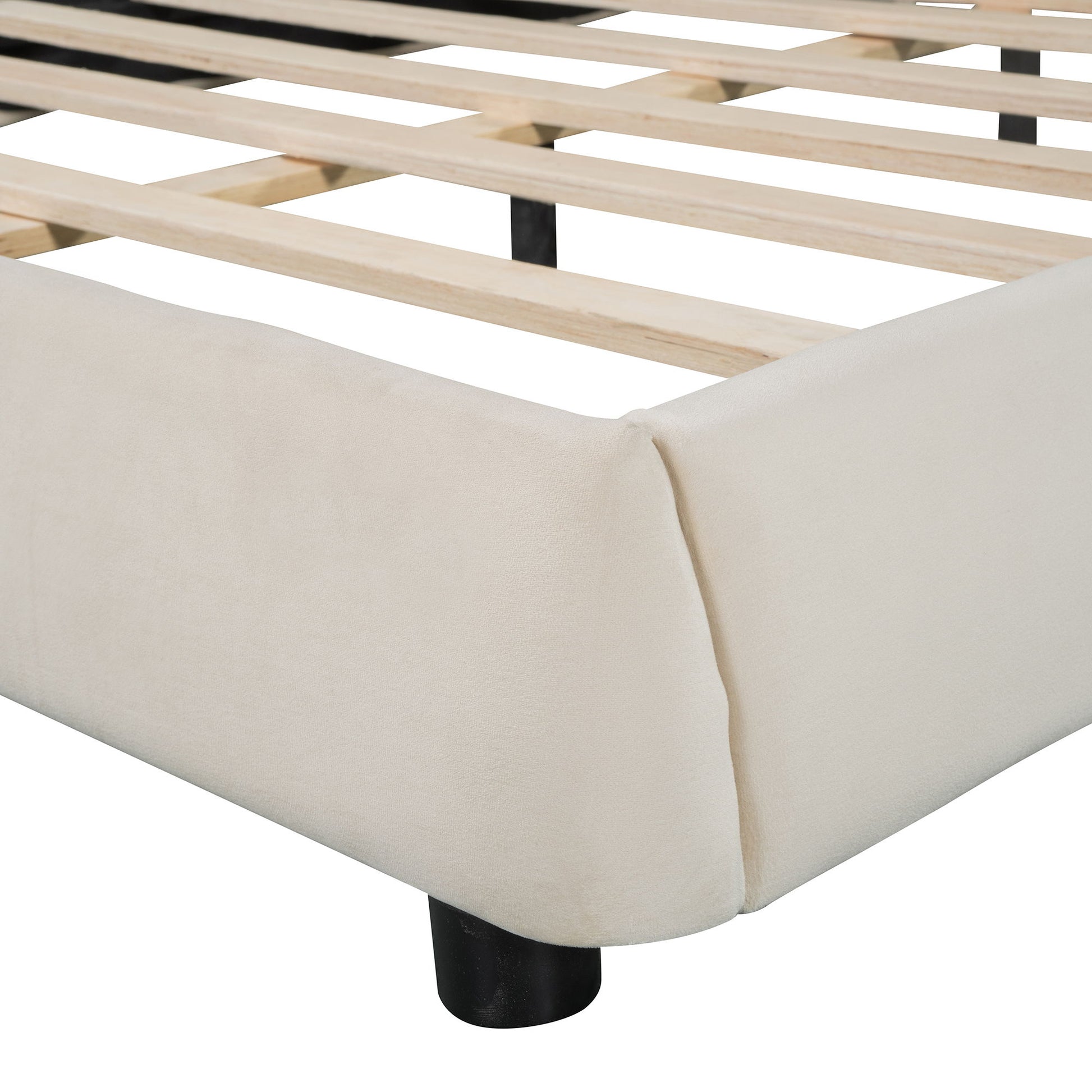 Elegant Design: The platform bed features a luxurious velvet upholstery with a gracefully curved headboard, footboard, and side rails, enhancing any bedroom's décor with a touch of sophistication.