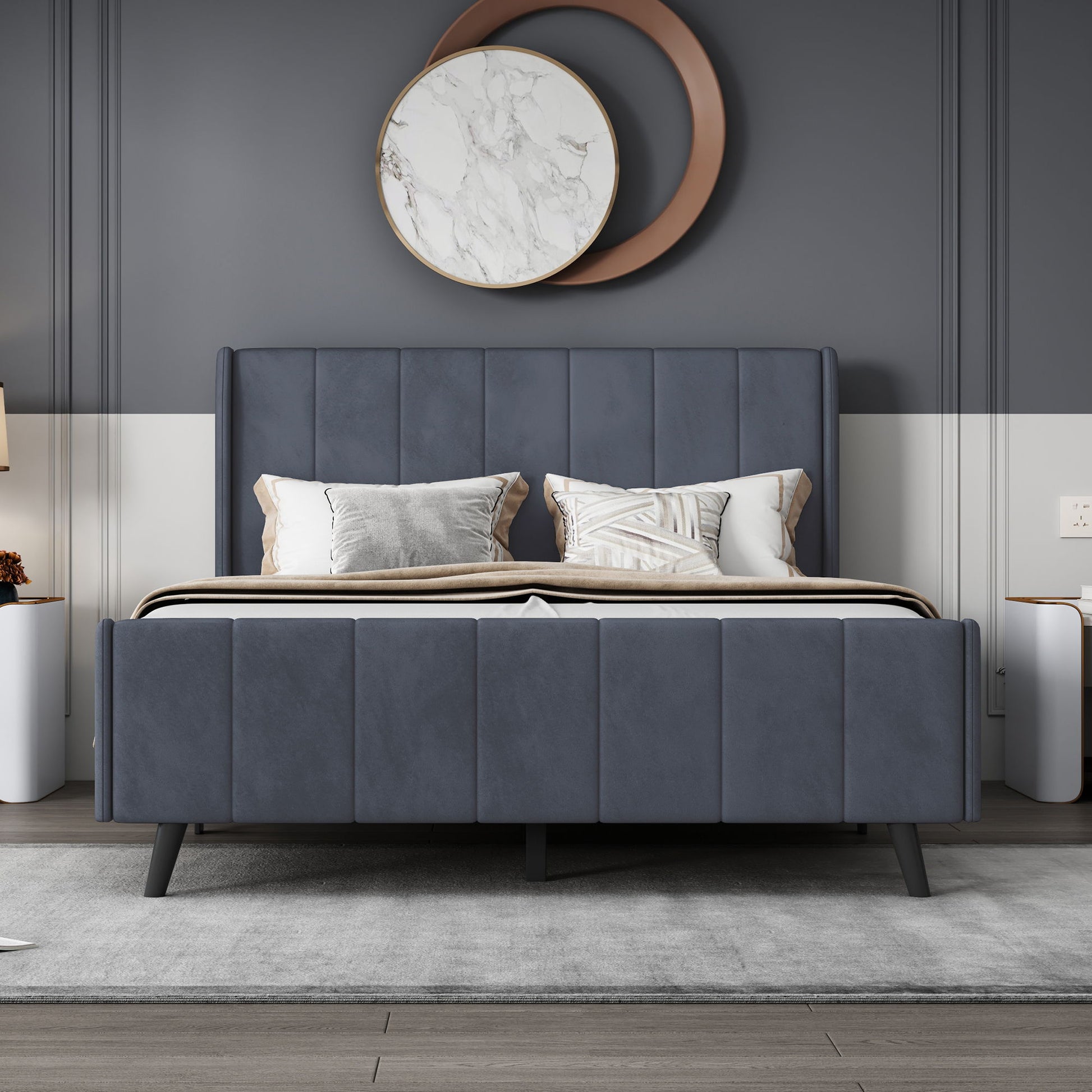 Upholstered in foam-filled velvet for an inviting feel, the included headboard boasts tufted detailing that adds a touch of visual texture. It gives any room a spark of style that's both modern and timeless. The supporting legs feature a fun design that enhances the overall layout of the room. The footboard is perfect for hanging clothes, thanks to its three-dimensional shape. This platform bed is hollow underneath, maximizing vertical space for storage. You can place games or puzzles under the bed.