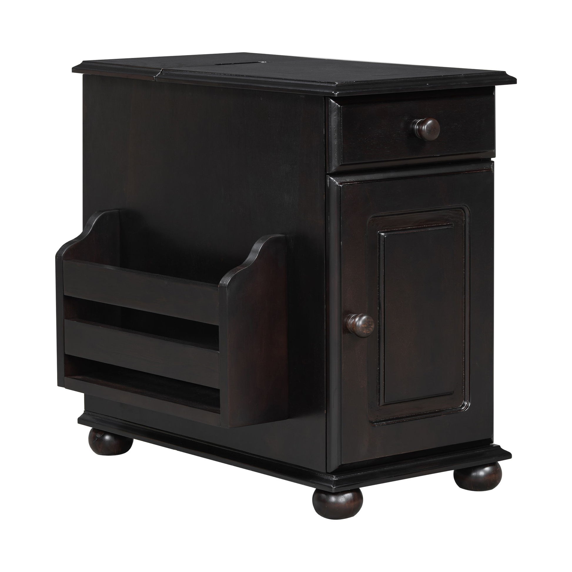 Vintage End Table Flip Top Side Table With USB Ports, 1 Multifunctional Drawer With Cup Holders, Sofa Couch Table With Bookshelf For Living Room And Small Space - Espresso