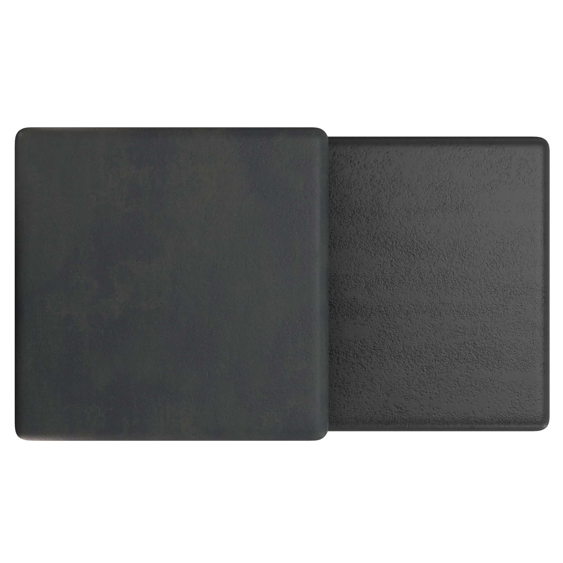 - Both tables are hand-finished with lightly textured surfaces; the taller table is in Graphite and the shorter table is in Black Nickel for a subtle contrasting effect.